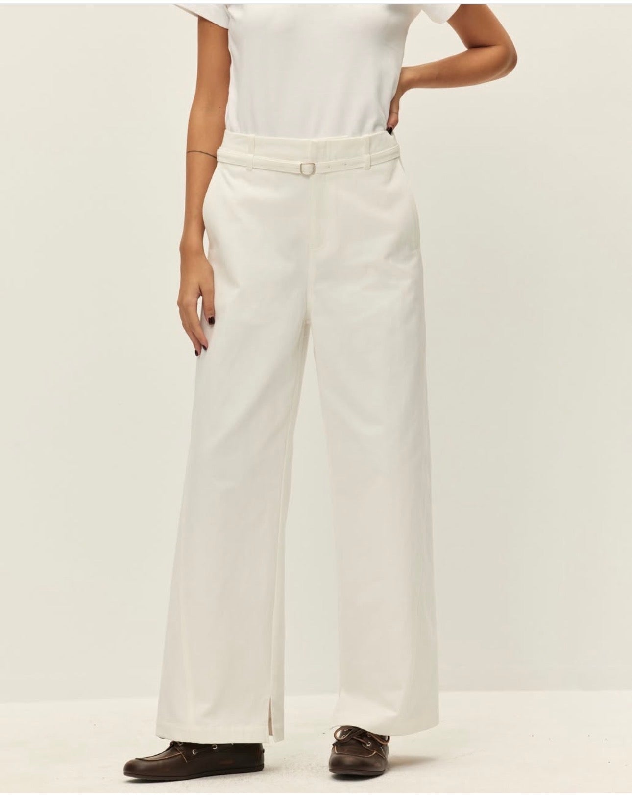 A classic trouser pant is a must-have for your wardrobe, it's a timeless product you'll wear over and over again. The white shade is great for everyday, bridal moments, a work meeting, etc. The ways you can wear are endless. Featuring a straight/wide leg, mid-rise, detachable belt, front pockets, hook & eye clasp closure.