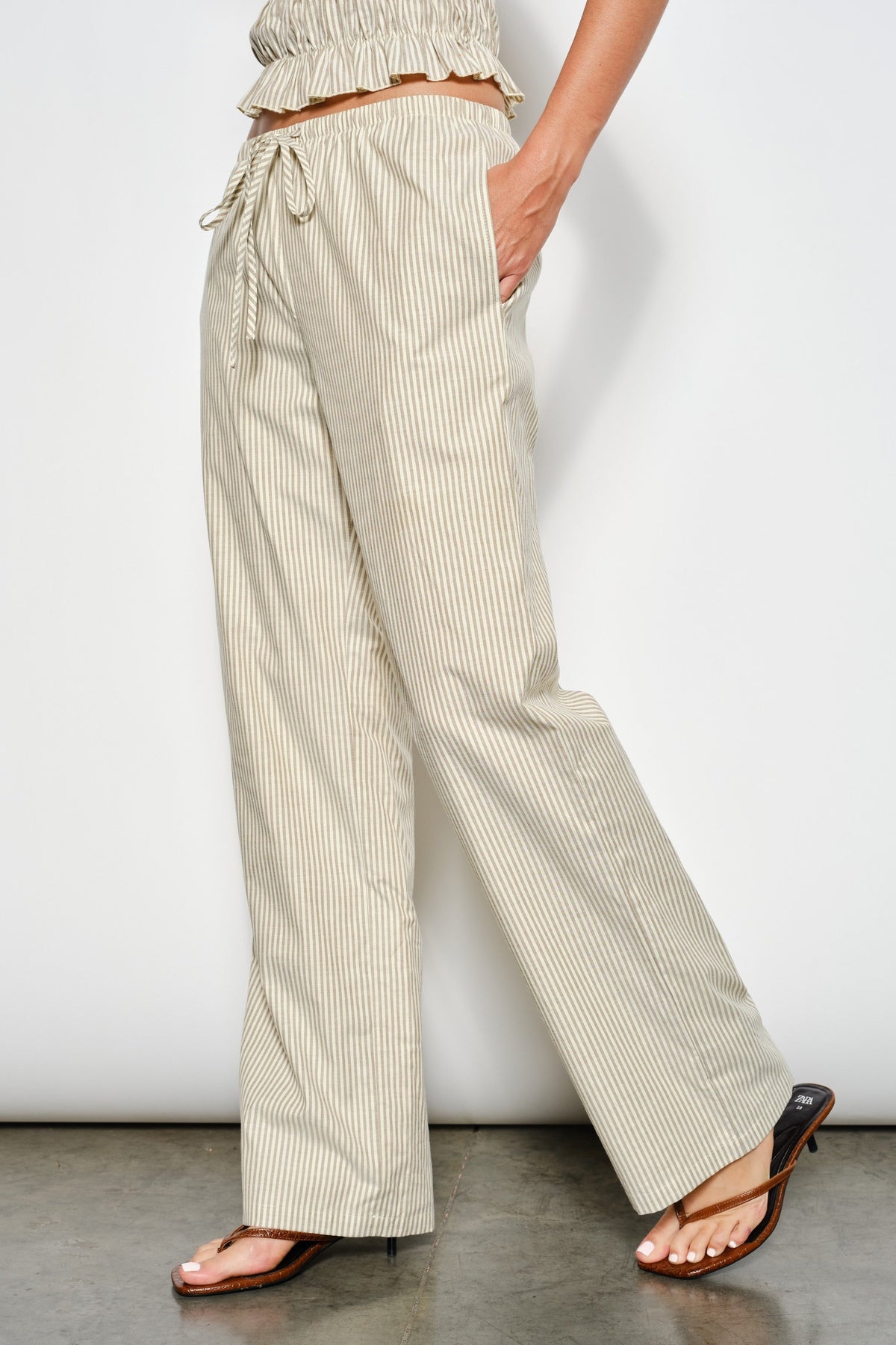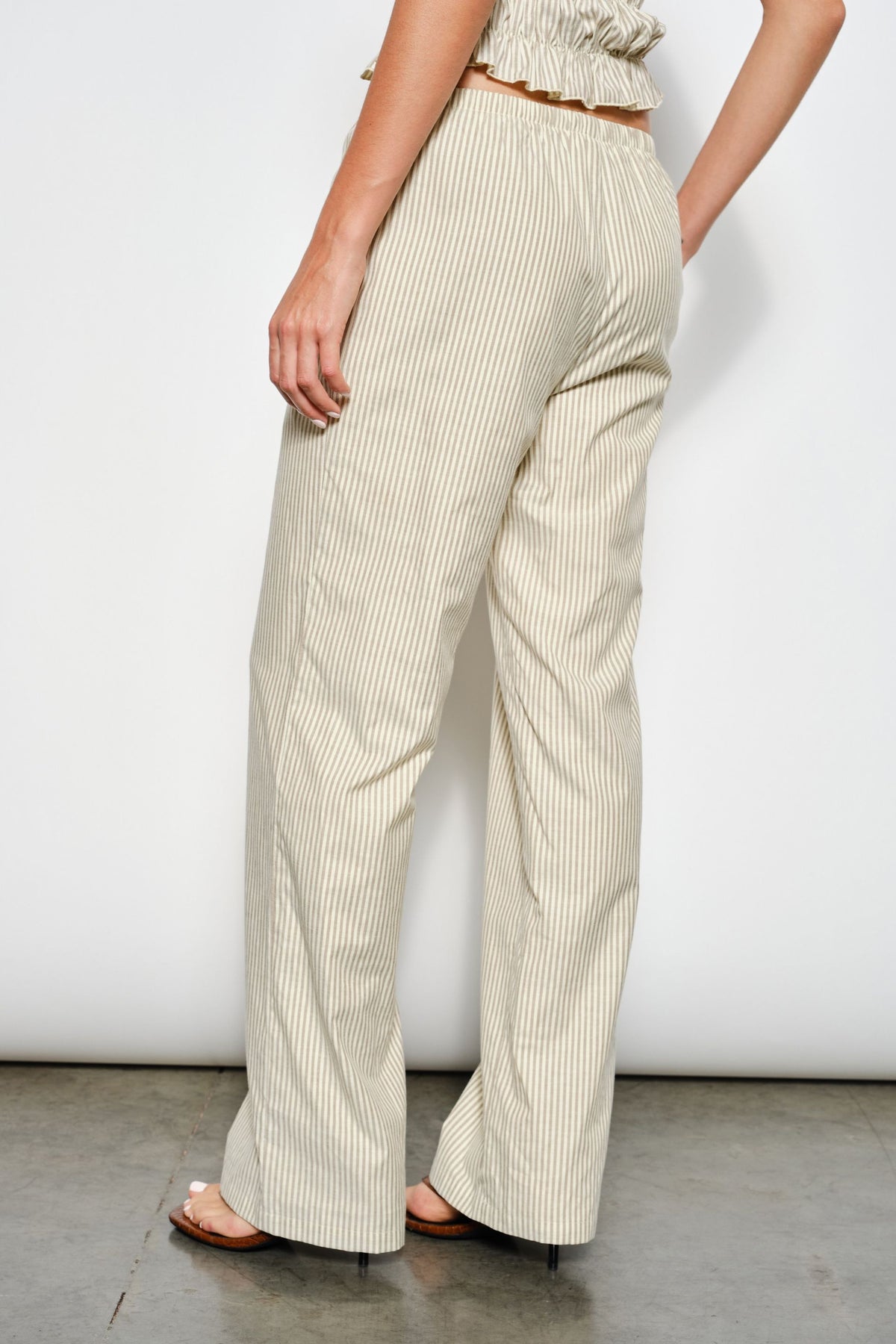 Breezy and effortlessly stylish, the Posey Striped Pants are made for easy days with elevated vibes. Designed with soft striped fabric, these relaxed-fit pants feature an elasticized waistband and adjustable self-tie drawstrings for all-day comfort. Side seam pockets add a touch of function, while the fully lined interior keeps the look clean and flattering. Lightweight and versatile, these pants bring casual sophistication to your everyday wardrobe.