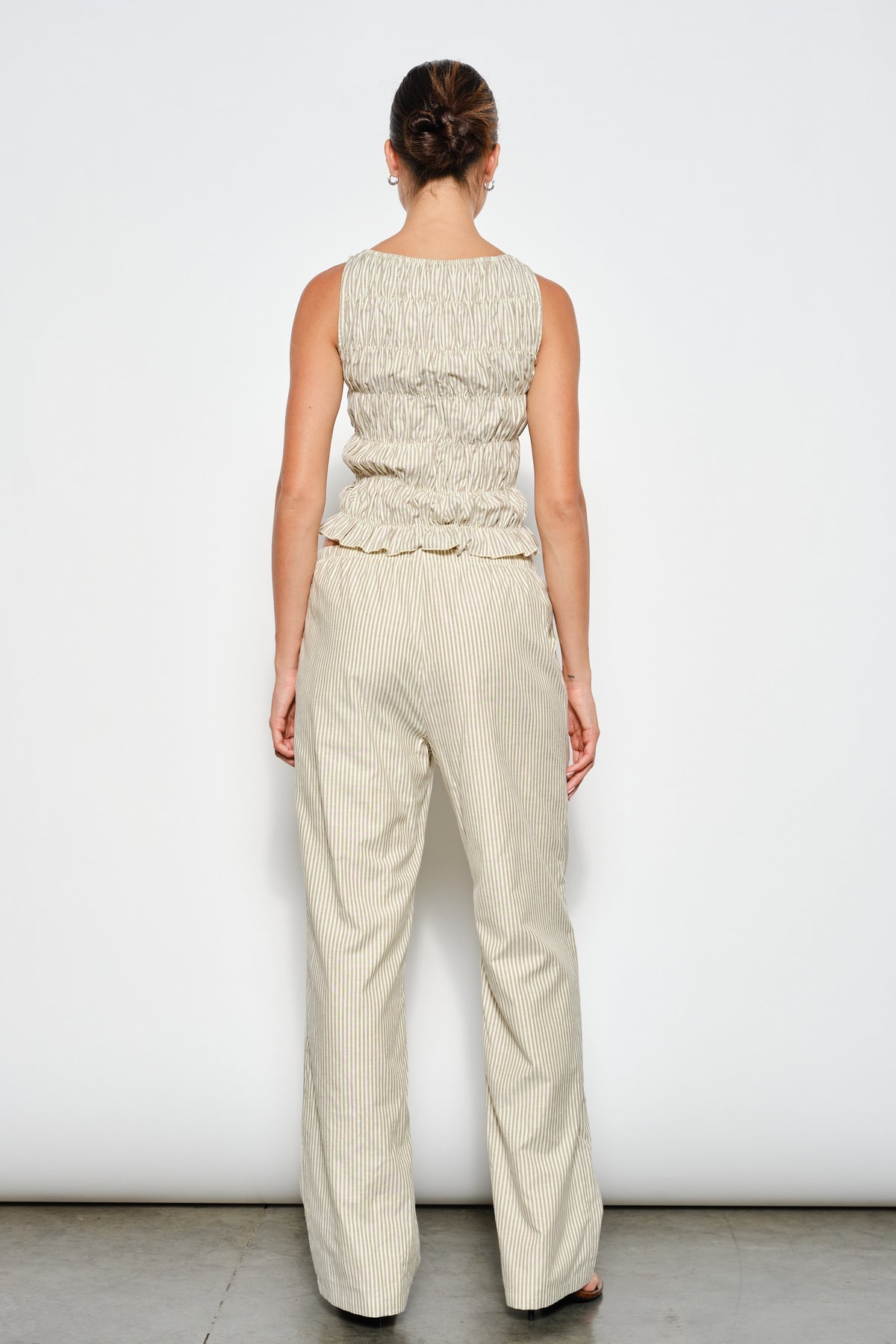Keywords: striped pants, elastic waist pants, drawstring trousers, casual chic bottoms, lined pants, soft cotton pants, everyday fashion, lightweight striped trousers, relaxed fit pants, trendy women's style