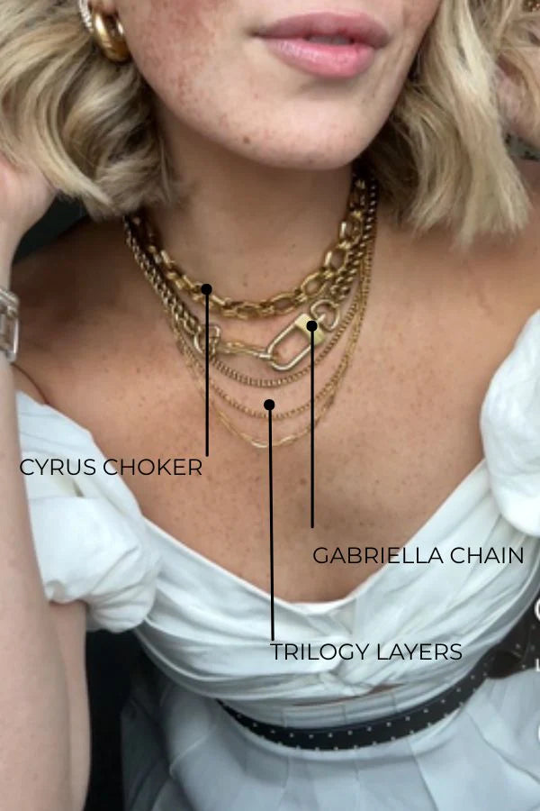 This double lock, thick chain statement necklace is a versatile piece that seamlessly transitions from a bold necklace to a stylish bag chain or belt chain. The piece is finished with our signature clasp.