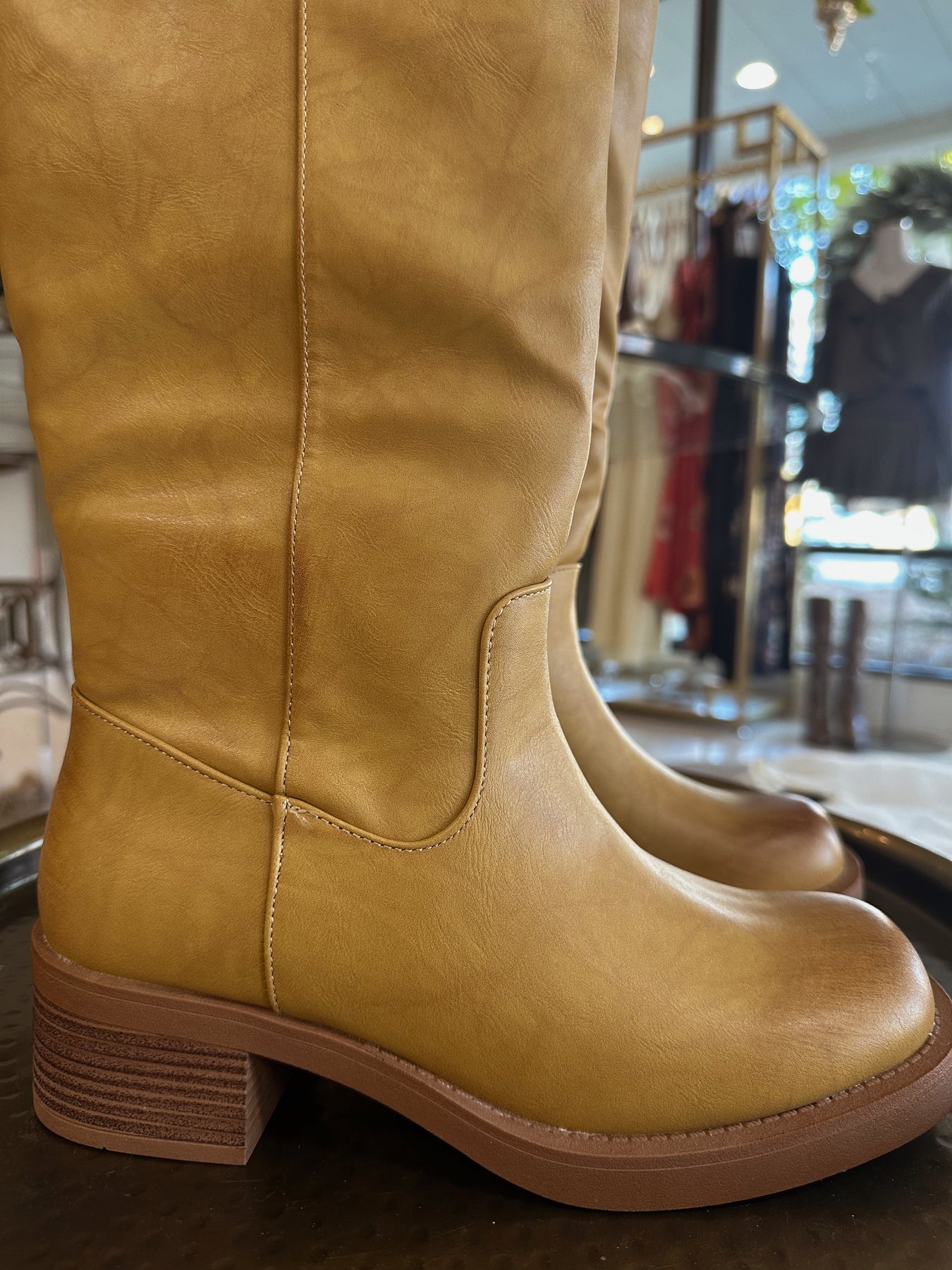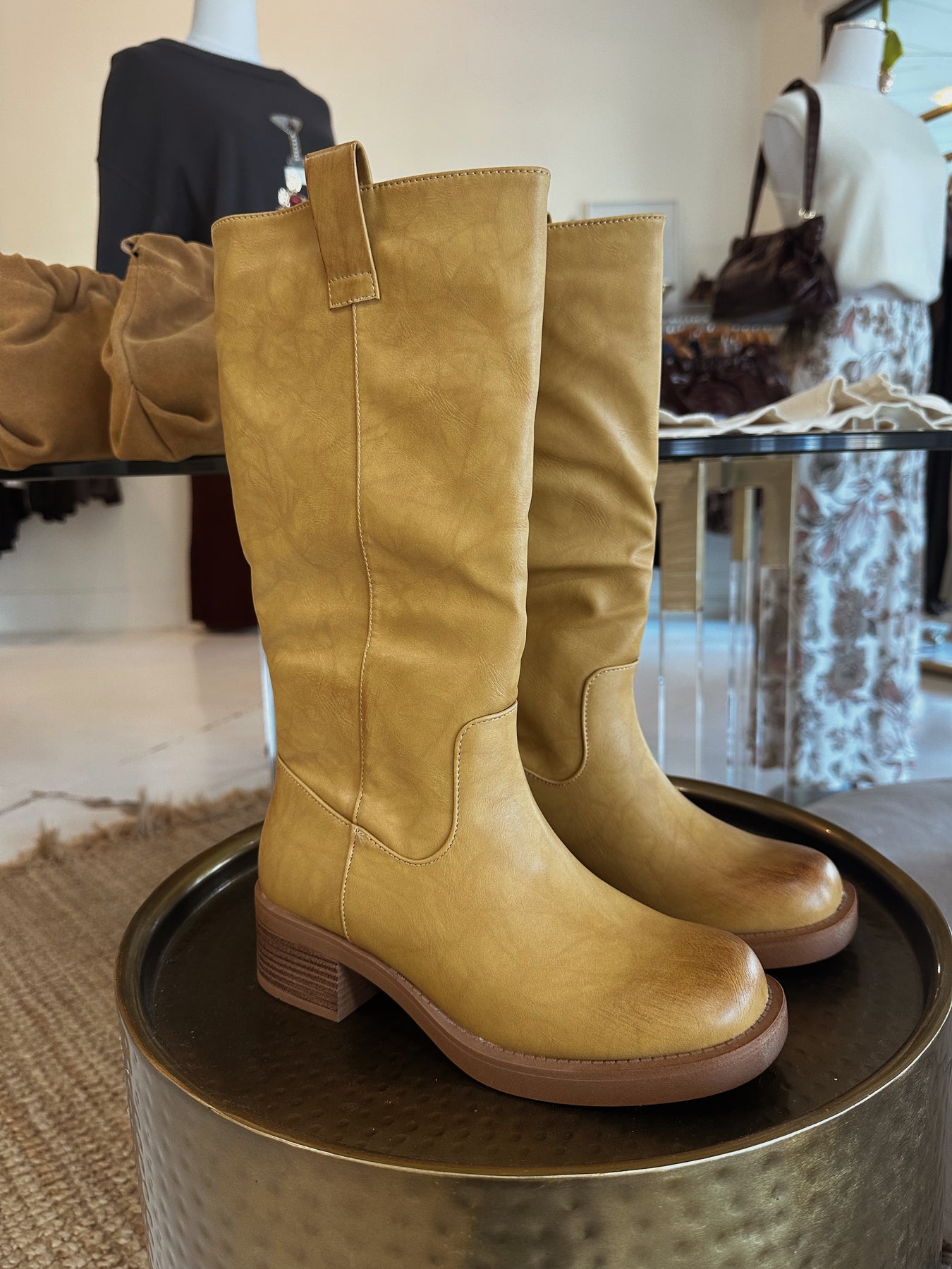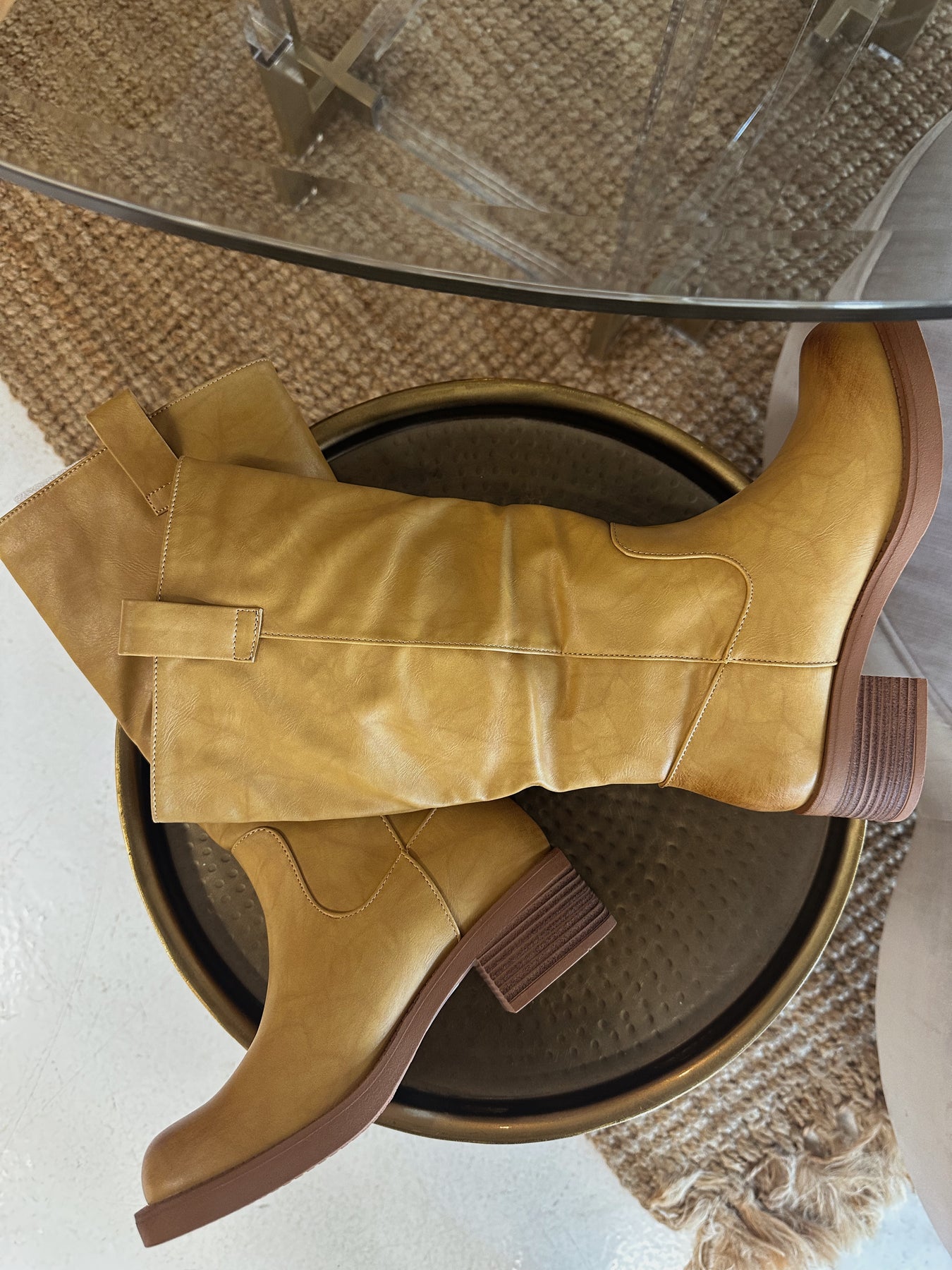 • light brown faux leather